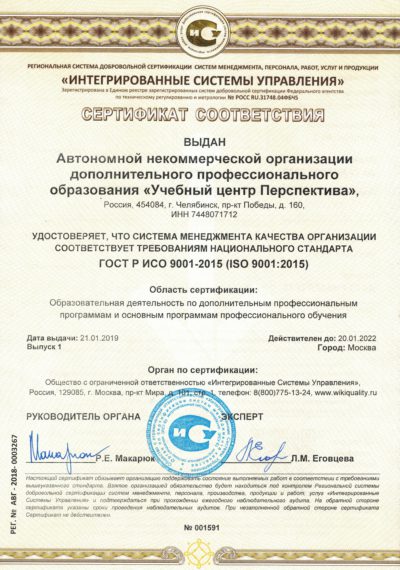 • Сертификат менеджмента качества ISO 9001:2015.
